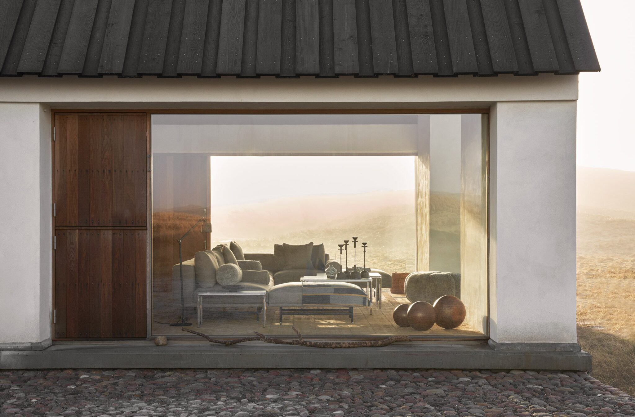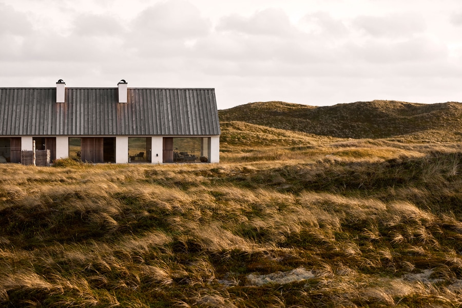 Η κατοικία ανασχεδιάστηκε από το αρχιτεκτονικό στούντιο Hahn Lavsen με την εσωτερική διακόσμηση από τη Julie Cloos Mølsgaard· συνδυάζει την αγροτική αρχιτεκτονική της περιοχής με μίνιμαλ σκανδιναβικές επιρροές, μέσα από περιορισμένη παλέτα υλικών — λευκοκίτρινοι τοίχοι, ωμό ξύλο, εκτεθειμένο τούβλο στο δάπεδο, γυάλινες επιφάνειες που «βλέπουν» προς τη θάλασσα και η φύση που περιβάλλει, να εισβάλλει σχεδόν χωρίς φράγματα.