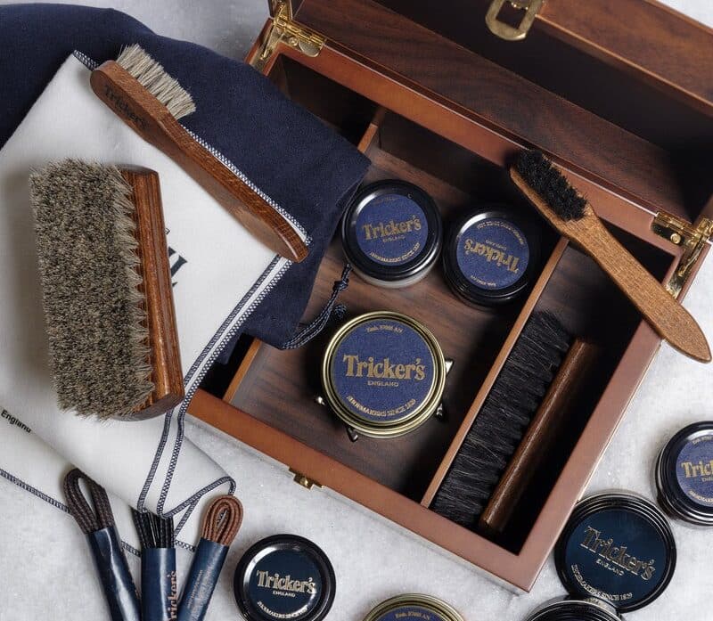 Η Tricker’s παρουσιάζει ένα εξαιρετικά προσεγμένο σετ φροντίδας υποδημάτων, το Valet Box, που απευθύνεται σε όσους θεωρούν τα παπούτσια τους περισσότερο από απλή επιλογή ενδυμασίας. Το κουτί είναι κατασκευασμένο από ξύλο καρυδιάς με στιλβωμένο φινίρισμα, διαθέτει λαβές και κλείσιμο από μπρούτζο και χωρίζεται σε τρία compartments.